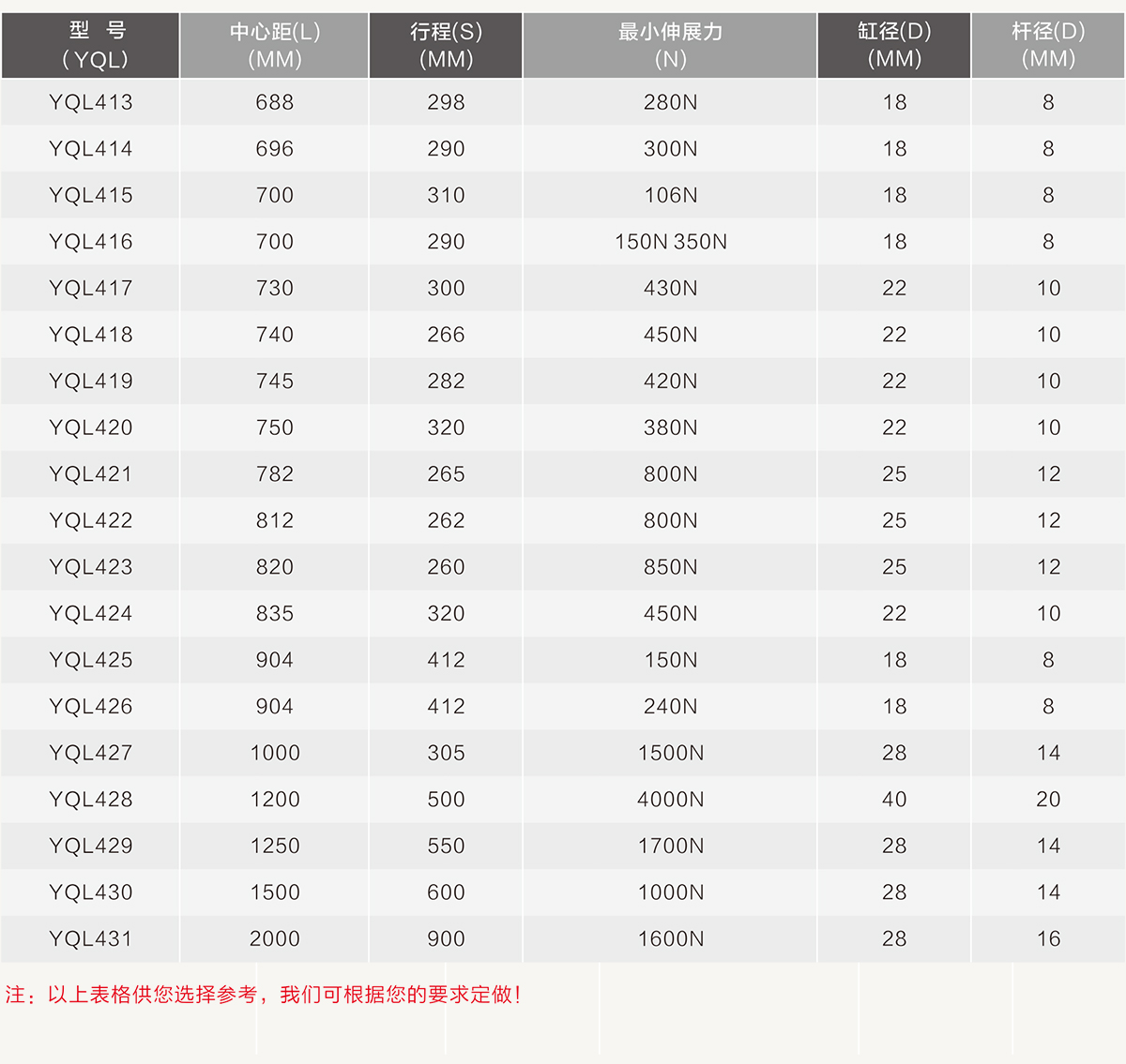 此規(guī)格表僅是龍翔產(chǎn)品的一部分,更多規(guī)格定制!
